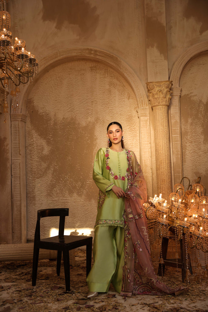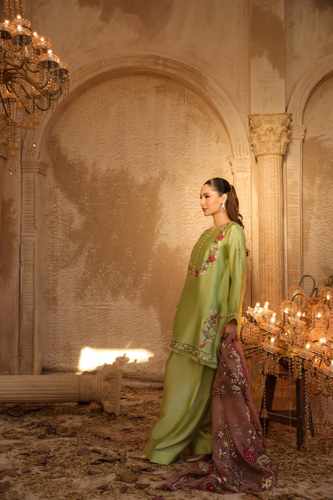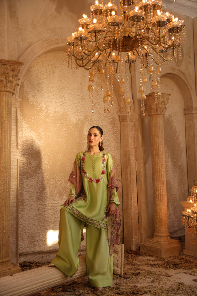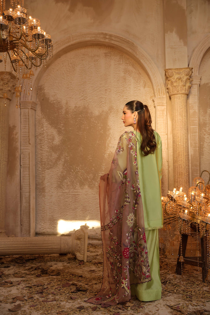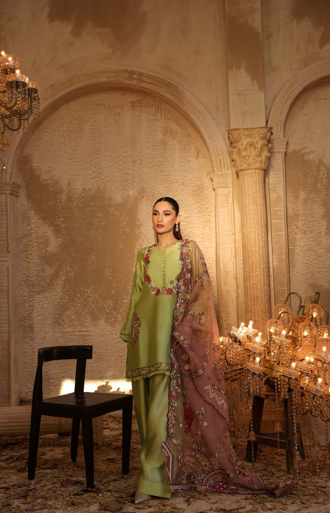 Dupatta is pure kethan organza fully embroidered and hand embellished with sequins.