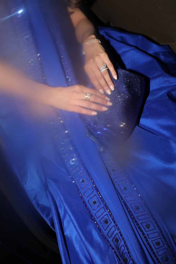 Dupatta is pure grip silk 80 gms 3.5 yards. Hand embellished border on all four sides plus embellished motif spray all over the dupatta.
