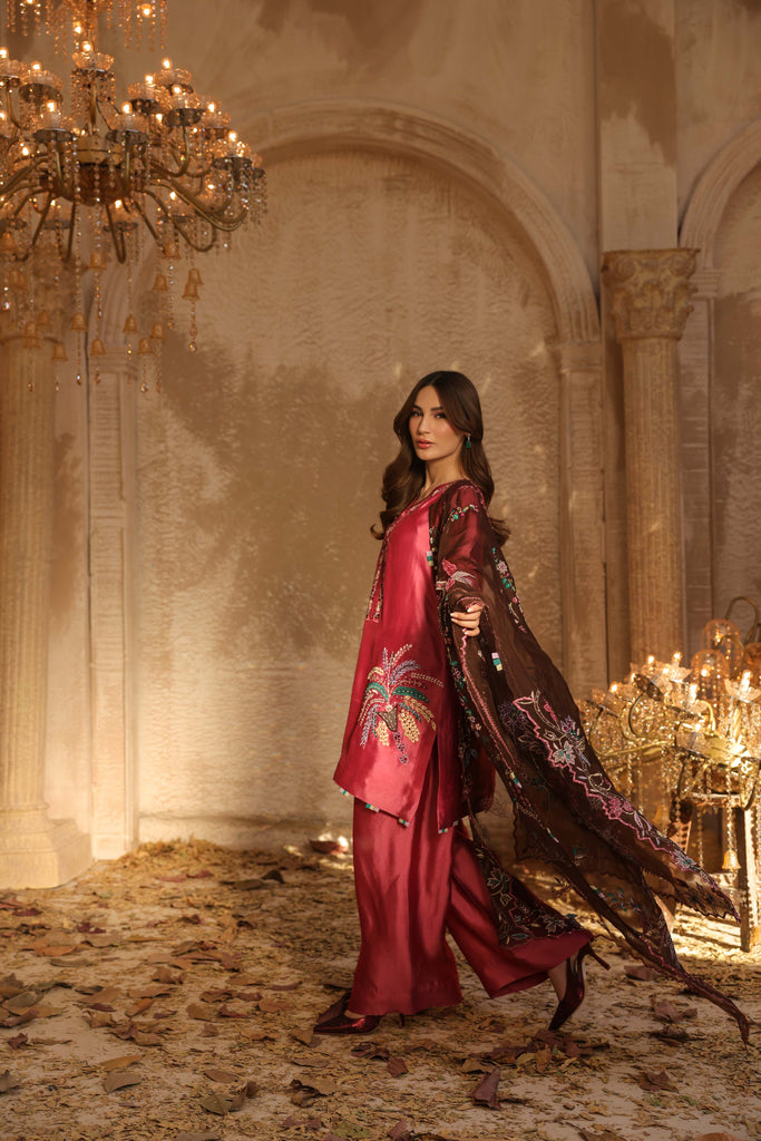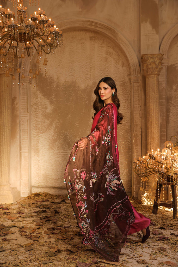 Dupatta is pure kethan organza fully embroidered and hand embellished with sequins.